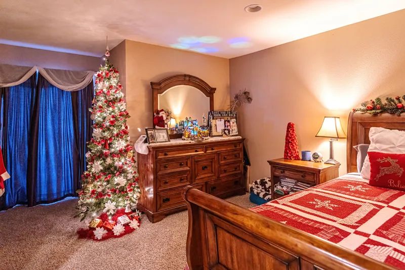 The Rose Tree pays tribute to other grandmothers in the family, particularly Julie’s Grandma Juanita Swanson. The tree situated in the master bedroom blossoms with red and pink roses. “She had over 200 rose bushes,” Julie says. “She hosted Christmas Eve dinner every year for 50 to 60 people. Everyone had a place to go.”