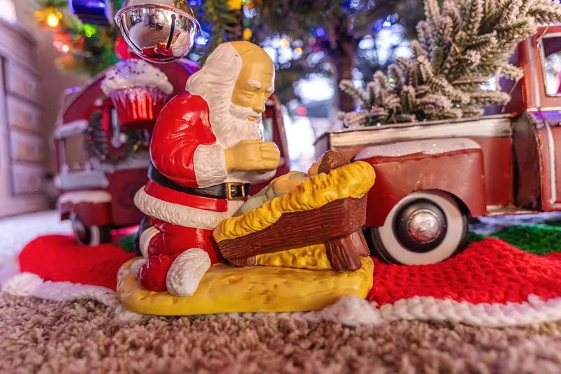 It’s a fun display of everything good. Sitting beside the tree is Santa kneeling before baby Jesus. “We bring this out every Christmas Eve,” Julie says with a wistful smile. “We adopted Grandpa Jim at The Springs (at Grand Park Assisted Living) and he gave this to the boys the year before he died. It was a special moment.”