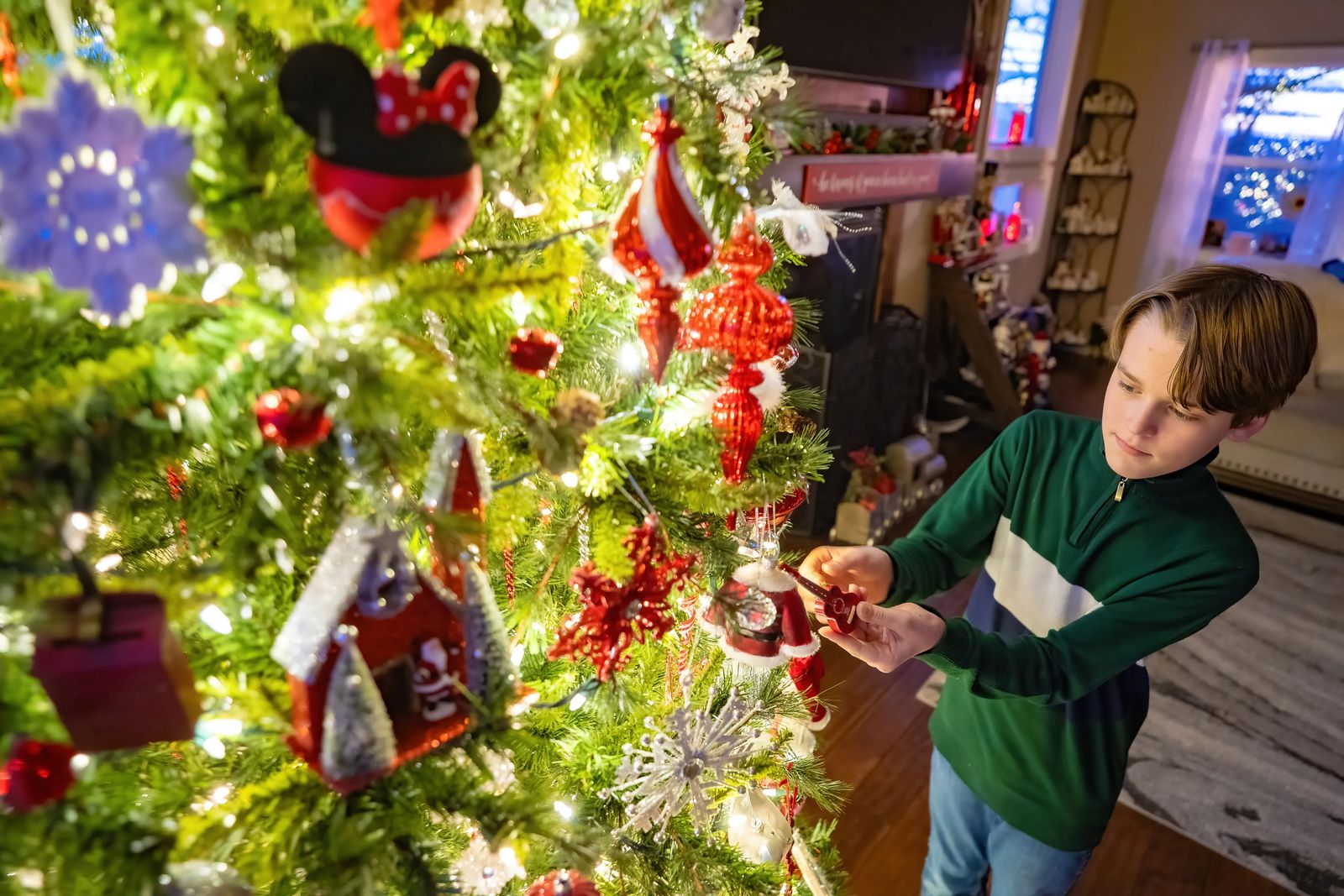 Peyton’s Tree comes alive with collectables from designer Christopher Radko. “The Nutcracker is from Grandma,” says 13-year-old Peyton as he removes a couple ornaments from the tree and holds them in his hand, “but my favorite ornaments are the Christopher Radko collection. I remember these the most.”