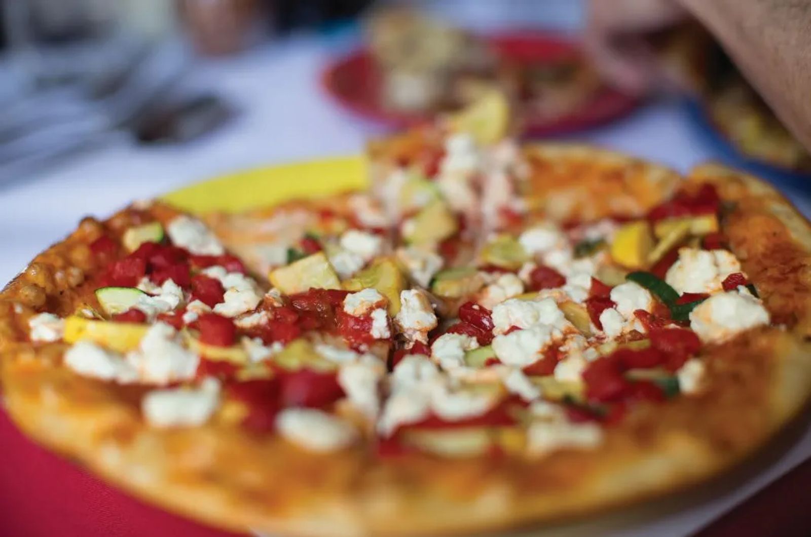 Pizza Rustica: grilled vegetables, goat cheese and house made tomato sauce