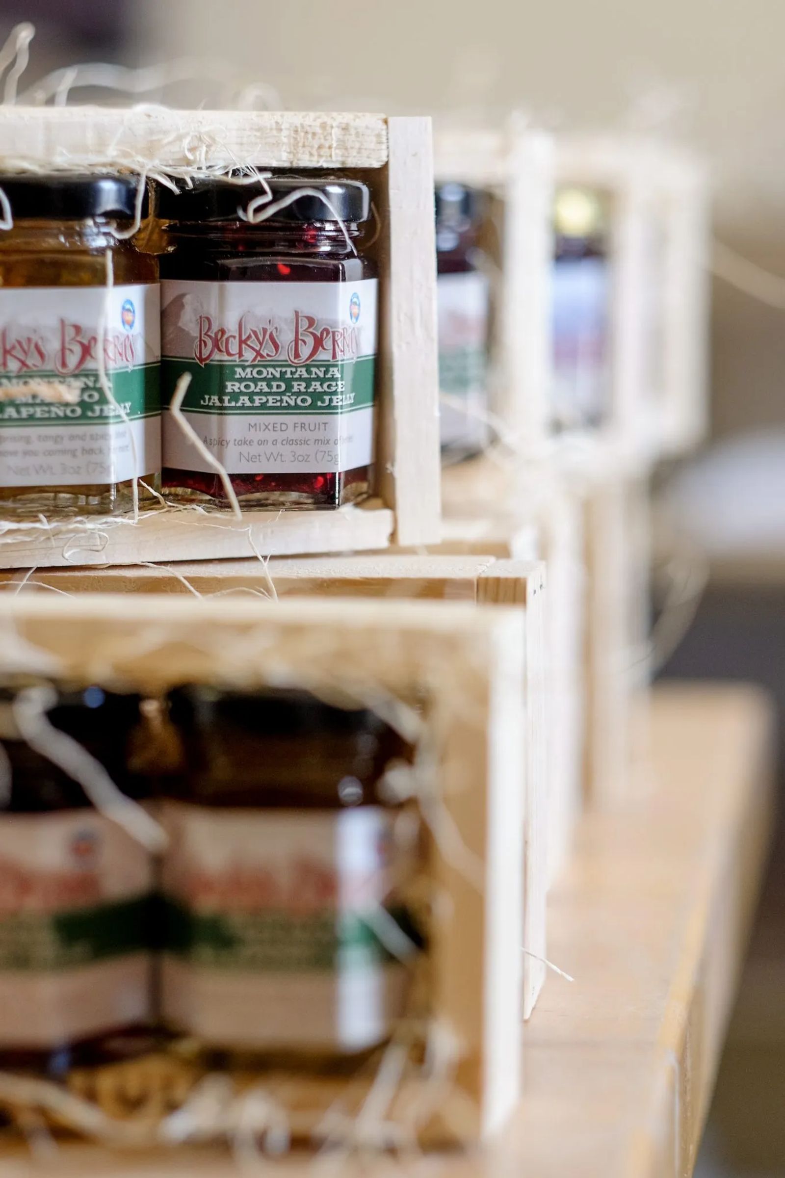 Every batch of jam and jelly is fresh and made to order. In addition to the berry varieties, Becky makes four jalapeno jellies and two chipotle pepper varieties. A Harlowton apiary supplies her with the two varieties of honey, a huckleberry and creamed peanut butter.