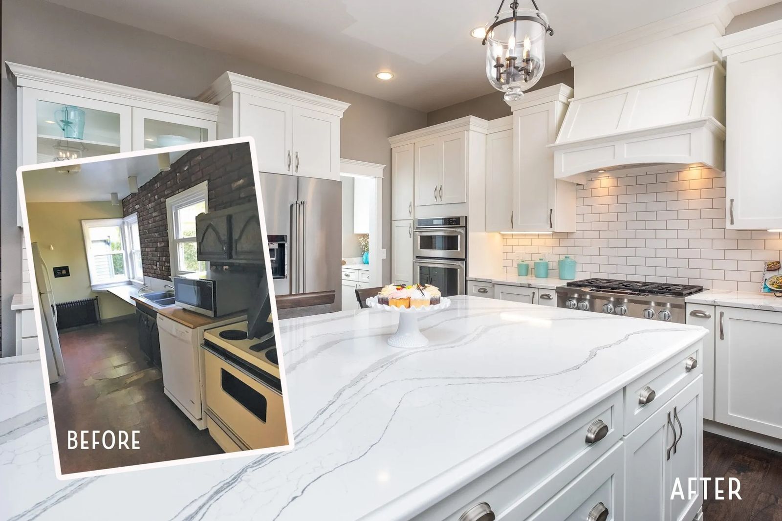 Finding a picture of her “dream” kitchen on Houzz.com, Angie then showed the photo to Jeremy. The old minuscule kitchen that “was no bigger than a small bedroom” is gone. Seeing the kitchen in this house today in its glorious white splendor, it looks exactly like the Houzz picture Angie holds in her hand.