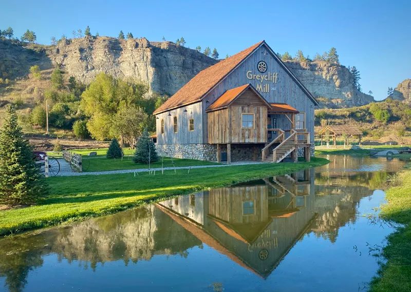 Standing majestically next to the gray-tinted cliffs near Big Timber sits a gristmill rich with historic charm. The renewed 1874 mill sits inside a 262-year-old Dutch timber-frame barn that made its way cross country from the hills of South Carolina.