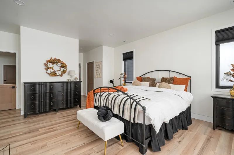 “Our dining room is everything I’d hoped it would be,” Sheila says. With an artistic flair, she found a distinctive design that graces the dining room wall. The home’s master suite is conveniently located on the main floor as well, with his and hers walk-in closets.