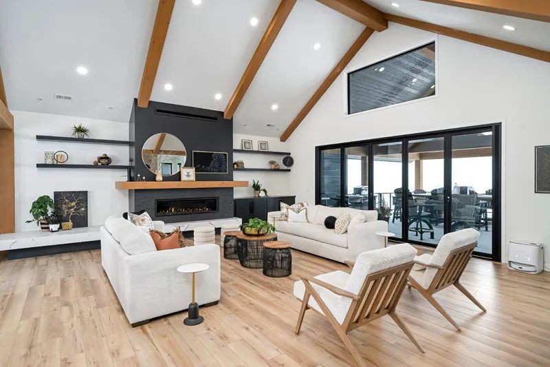 The main level of the home also has a bifold door opening the entire wall up to a covered patio with endless views.
