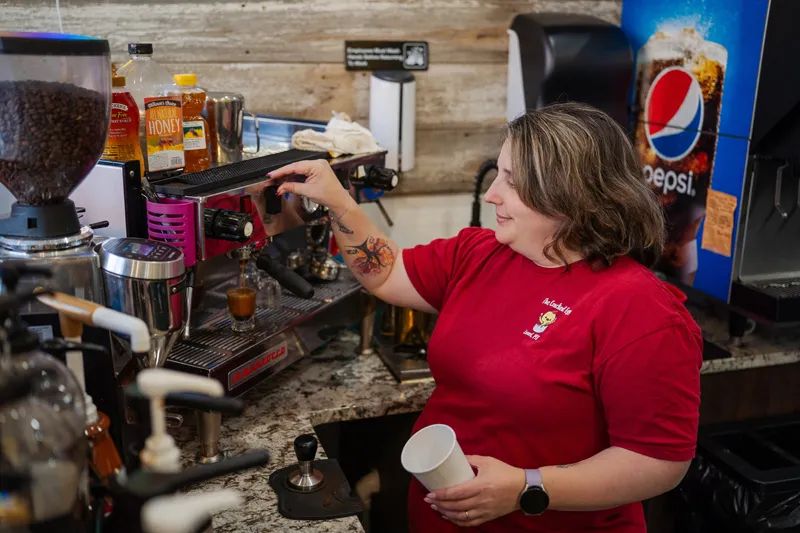 Jackie owns the shop with her mother, Lynnette Blumhagen, and friend Darby Gerondale. Her mother makes all the soup from scratch, and they all pitch in during the lunch hour to make wraps, keep the popular salad bar stocked and cover the register. It’s a hang-out spot for kids and families, and lunchtime regulars rave about the homemade cheeseburger soup.