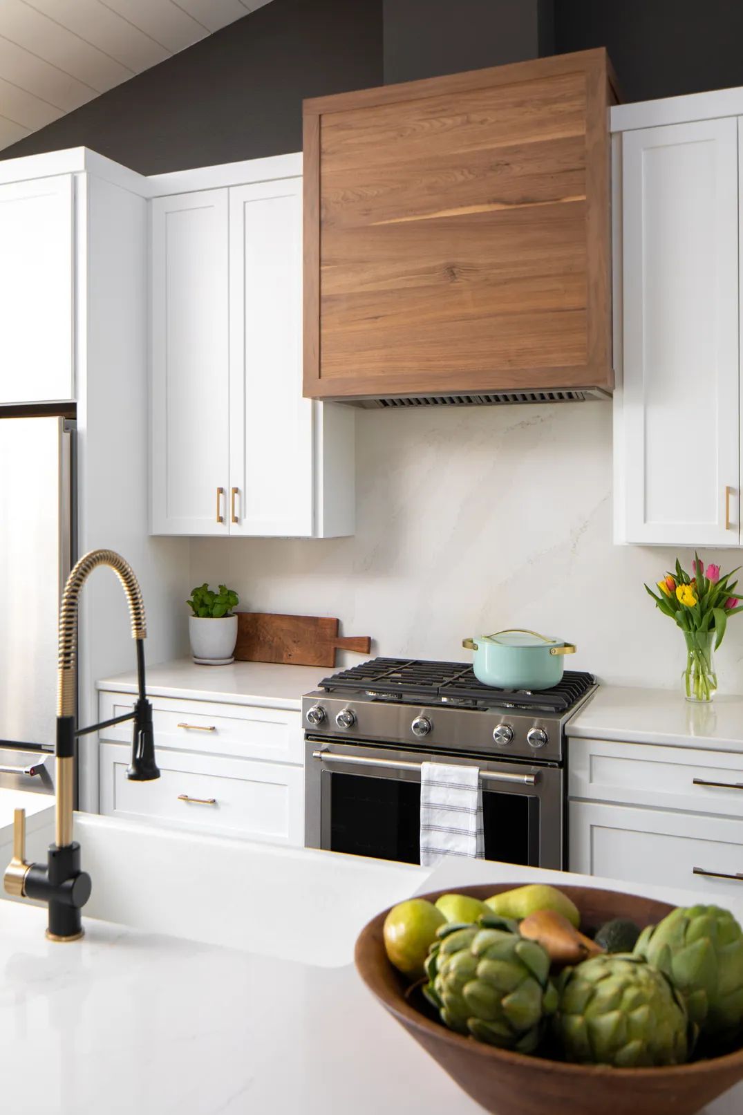 As Kristy mentioned, the biggest draw of the solid surface backsplash is, hands down, the seamless, clean look it creates. “No grout lines to clean means less hassle!” she adds.