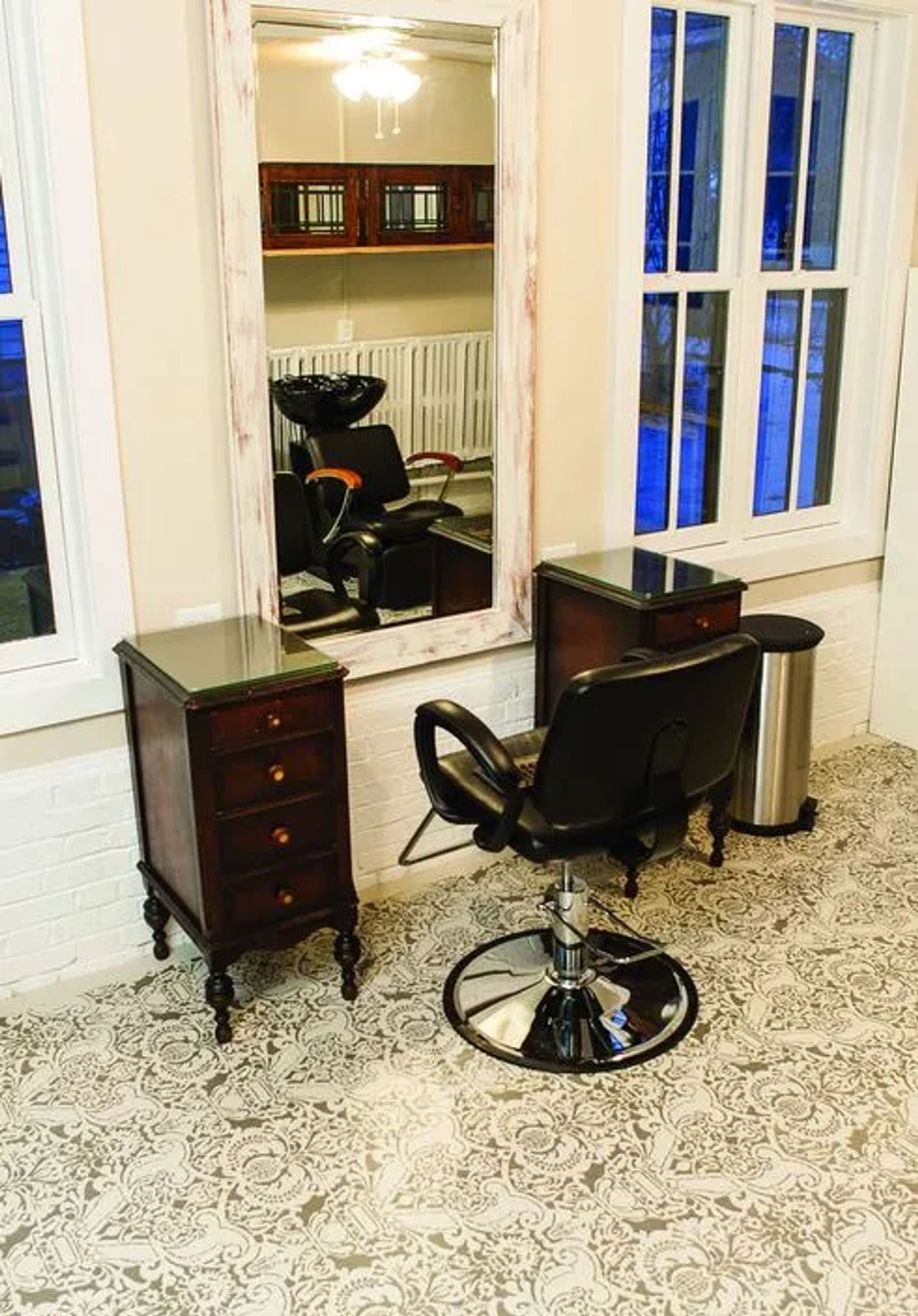 Working with an old concrete floor, we decided to cover the space with a wood sub-floor to give us a smooth surface to work on. We filled all the seams with wood filler and sanded the area until it was smooth. This step sounds like a horrible amount of work, but it really wasn’t bad. Make sure you clean up the dust very well. First apply a high quality primer and then, follow with two coats of your chosen base color. We chose a shade of light grey. After allowing the paint to dry, we taped a border around the edge along the wall. The width of the border is your personal choice. This gave us a finished, consistent edge around the room. To make sure the pattern stayed symmetrical we found the center of the room. We measured the width of the room and drew a line with a straightedge, and then we measured the length of the room and drew another line with a straightedge. Where the lines intersected, was the first placement of the stencil. After we secured the stencil with masking tape, we took our second paint color and the foam roller, and carefully rolled the darker grey paint on. Immediately after painting, we removed the stencil taking a couple seconds to allow any seeping paint on the stencil to dry. We placed the stencil along the same line, working in a straight line and away from the wet pattern. When we finished our first row, we lined up the stencil until every row was tackled. The key for us was to work slowly and methodically. While the last row around the room seemed like it would be tricky, the stencil is flexible so it was easy to work around obstacles like walls. Once finished stenciling, while the paint was still wet, we removed the masking tape border being careful not to smear the wet paint. We admired our crisp edges and then let the floor dry for a couple days. To finish, we applied four coats of polyurethane allowing dry time in between coats for a protective finish. Once all was said, done and dry, our one-of-a-kind, attention grabbing floor cost us roughly $300. For about $1 a square foot, that's a great price and a great look for a little bit of work.