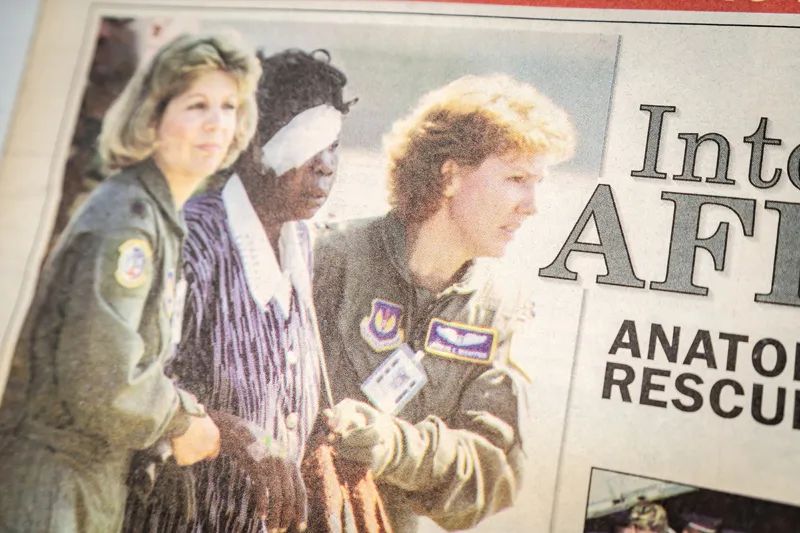 Lorraine was on duty in 1998 when the U.S. embassy in Nairobi was bombed. As she oversaw the medical aircraft preparation to recover bombing victims, she was captured in the front-page photo of The Air Force Times, supporting a wounded Kenyan embassy staff.