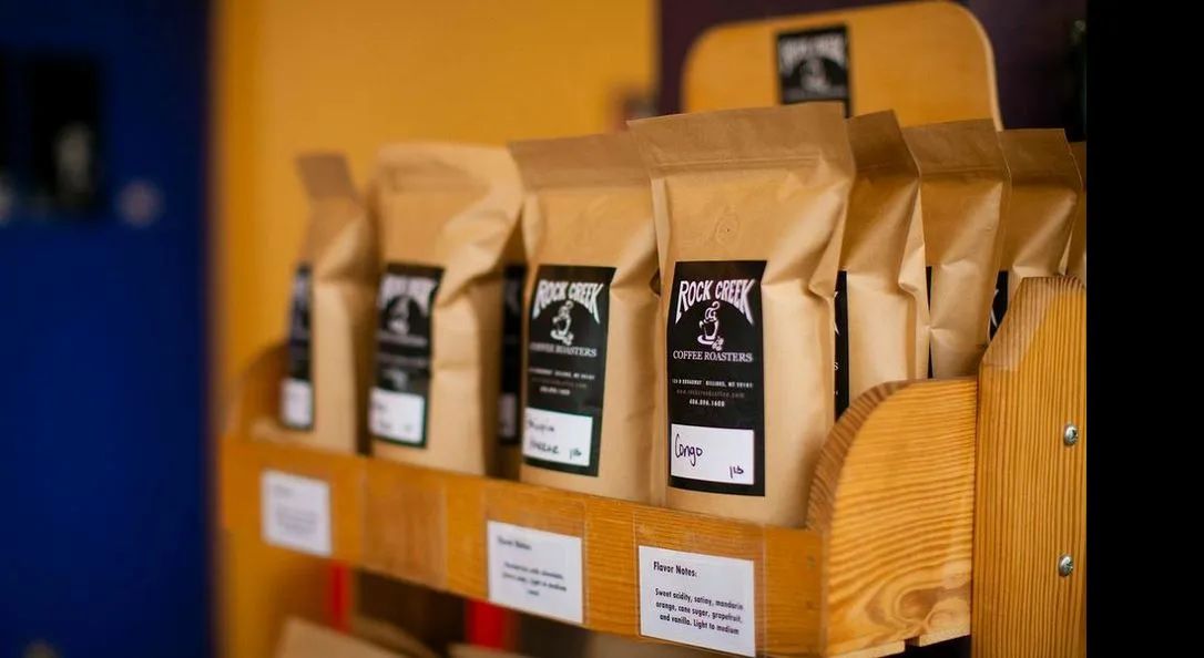 Right under the canopy of Sky Point, Rock Creek Coffee Roasters provides the best view of Billings’ downtown life through soaring windows. With exposed duct work, hanging ceiling fans, wood counters and tables, a vintage air dominates. There is ample space to linger for work or conversation, but the real heart of the café is found in the back corner where a working Diedrich coffee roaster sits surrounded by canvas bags of coffee beans.