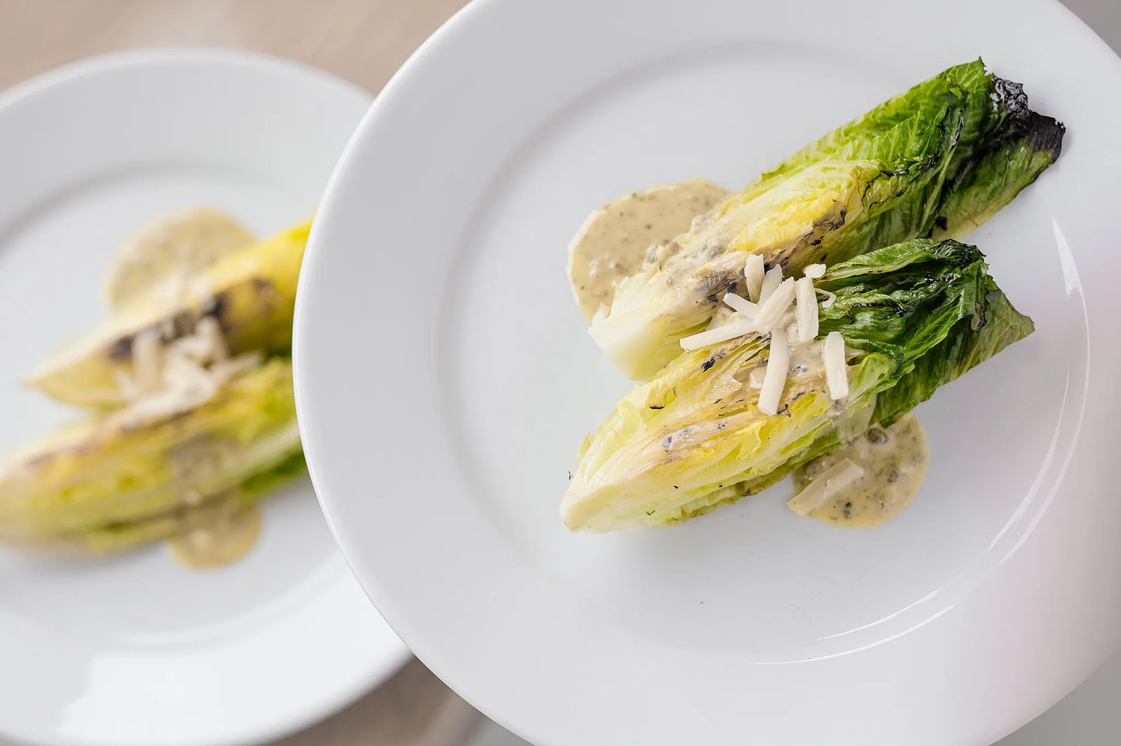 GRILLED ROMAINE LETTUCE SALAD WITH CAPER LEMON DRESSING