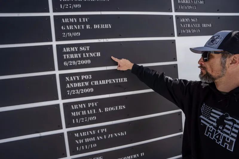 “I wanted this memorial to be something that people can touch. It makes things real and tangible. It represents the people I can’t touch anymore — the soldiers, my battle buddies that I can’t give a handshake or a hug,” Rick says. “You can have an experience here, take time to pause, reflect and say thank you.”