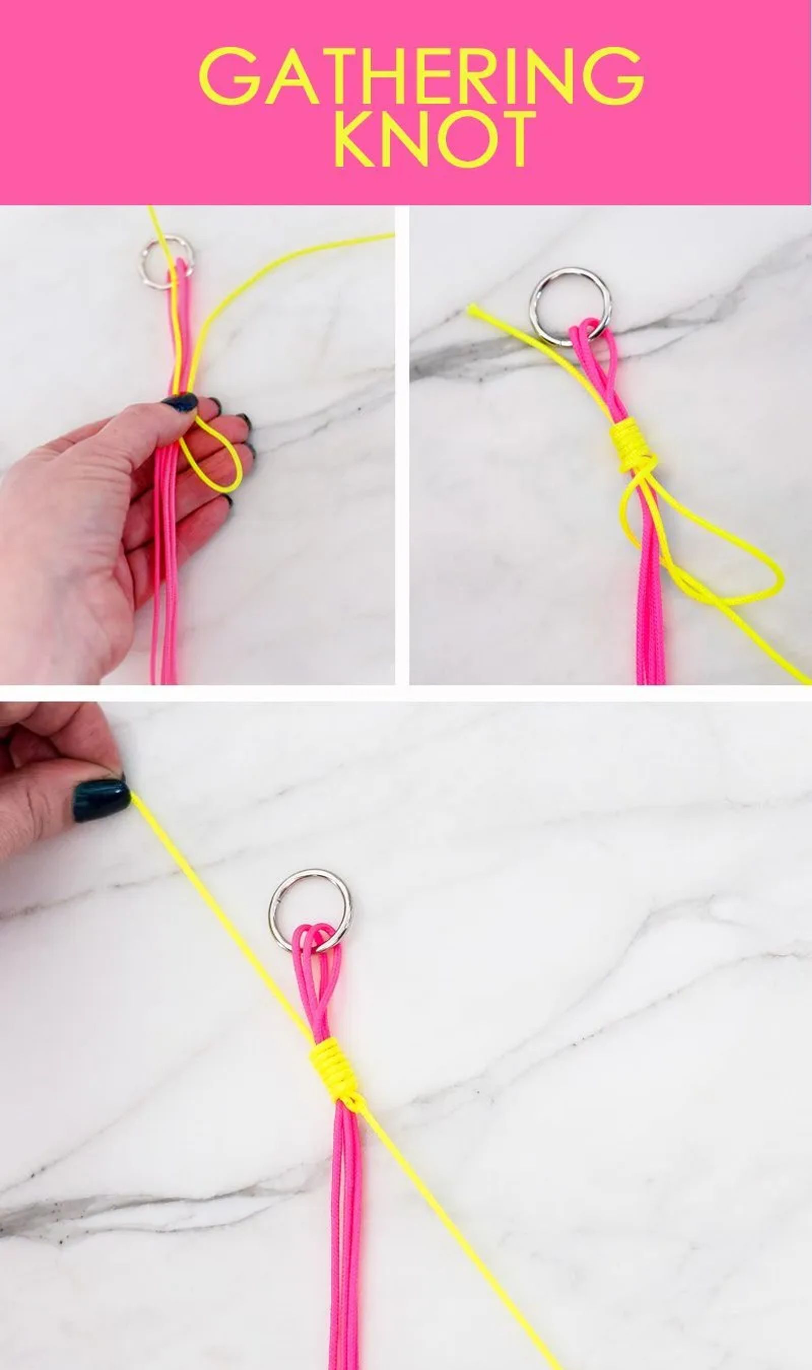 If you are concerned about not being able to get the knack of tying a good macramé knot, it is important to note, there are so many variations of knots that it is almost impossible to mess up this DIY project. Your “take” on a certain knot might just make it all the more unique. The few knots I am demonstrating are very basic, allowing you to make your own pattern as you go.
