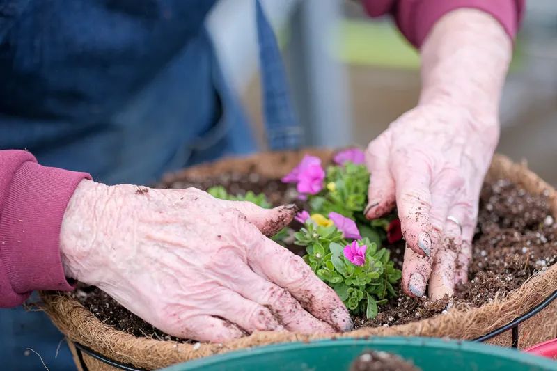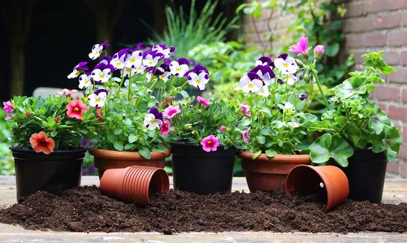 For your patio pots and hanging baskets to do well, you’ll want to do some detective work. Take a look at where they’ll be placed and think about the amount of sunlight they’ll get and whether or not they’ll be in the wind. Then, choose flowers that are suitable for those conditions. You’ll know from their tags what they can tolerate.