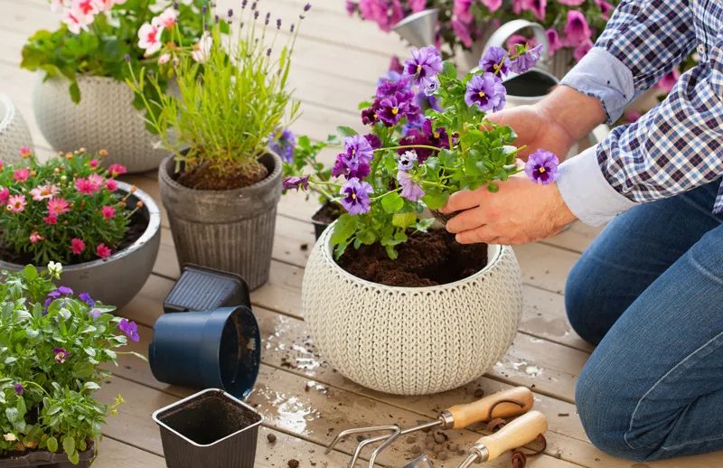 To keep flowers blooming, don’t forget to pinch off spent blossoms.