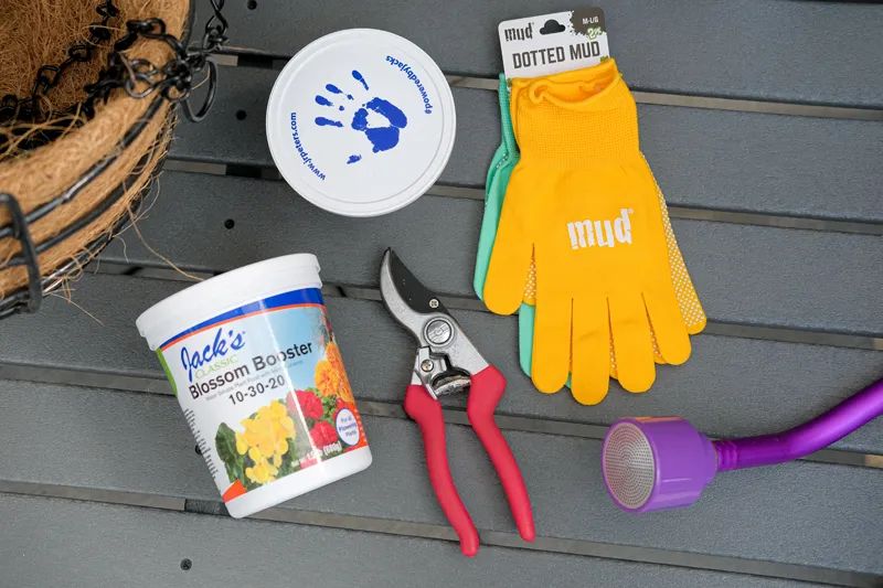 Patio planters and hanging baskets need regular feeding, and Mick recommends Jack’s blossom Booster.