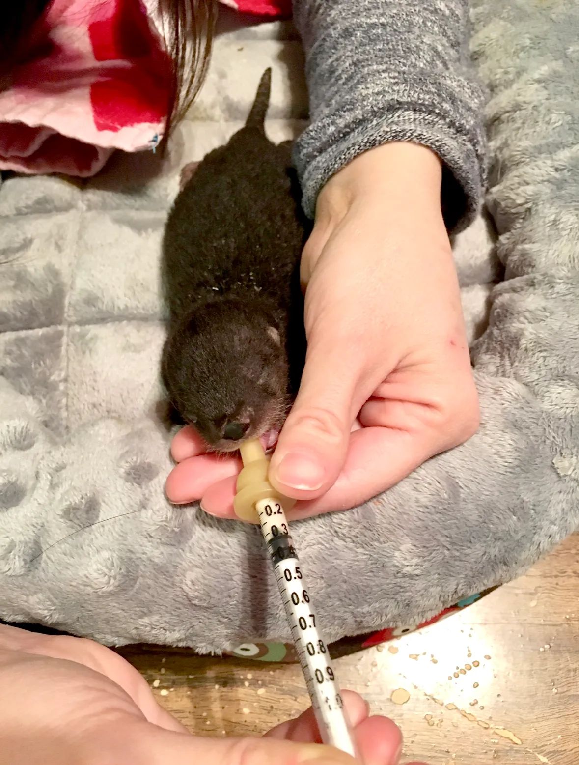 "It is rare that an otter is orphaned or not accepted by their dam,” Amanda says, adding that otters are fierce parents, like a bear with her cubs. “In Mia’s case, I believe she didn’t produce any milk, which is why she didn’t take the kits.”