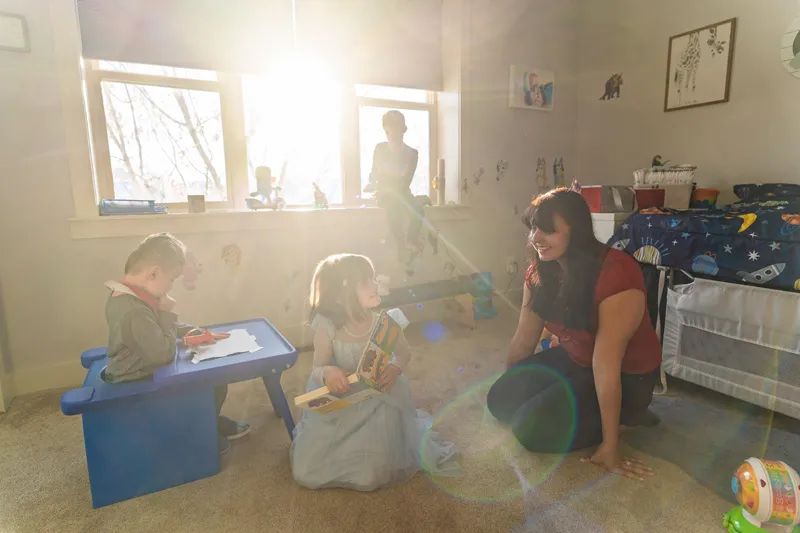 At home, John cares for George and Sofia.