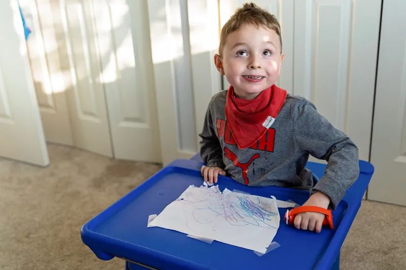Even with the TREXO, progress is slow for James. He still spends a lot of time in various therapies, including physical therapy, speech therapy, occupational therapy, and he enjoys swim therapy and horseback therapy in the summer months. Every year, Katy goes to Colorado Springs with James for a 6-week intensive therapy session to aid his progress.