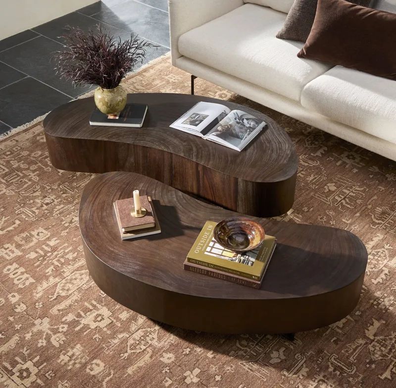 Texture plays a major role in creating that inviting feel. In her design, Tiff is leaning more toward organic materials like mohair, tweeds, velvets, shearling and heavy linens. In accessories, ceramics, painted metals and darker, richer wood tones are adding contrast and flair. Furniture silhouettes are softening too — curved sofas, rounded arms, skirted pieces, and organically shaped wood tables are replacing sharper, more angular forms.