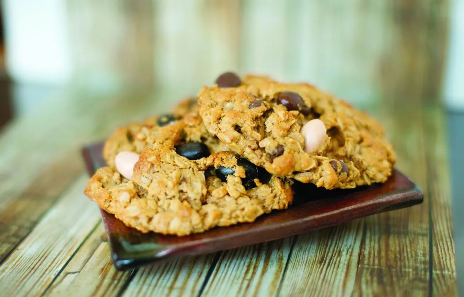 In a very large bowl, mix ingredients in order given. (Use hands if necessary). Drop on cookie sheet (an oven liner works well) about five cookies to a sheet with ice cream scoop and flatten. Preheat oven to 350 degrees. Bake for 12 minutes or longer until done. Be careful, these burn easily. This recipe makes about 80 saucer size cookies. Note: I make balls of dough and freeze them on a cookie sheet. Once they are hardened, I put them in a freezer bag to take out and bake whenever I need cookies!