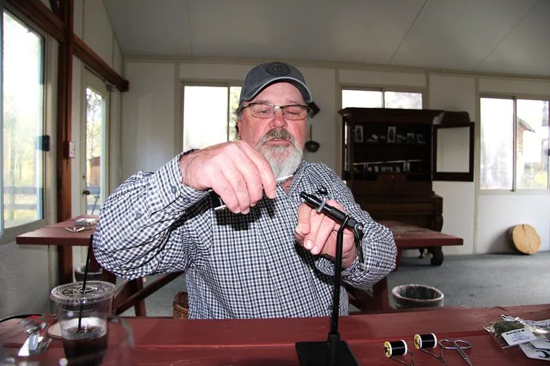 Don Wilson, the resort’s fly-fishing consultant, takes Val and me through the creation of a Woolly Bugger fly. This fly, which simulates a baitfish or leech, is one of the easiest flies to tie. “I taught myself how to fly cast in a baseball field,” Don admits. After watching a Bill Dance fly-fishing reel, he practiced on his own. For fly tying, he “read a lot of books and watched videos. It was a lot of trial and error and lots of wasted materials,” he says with a chuckle.